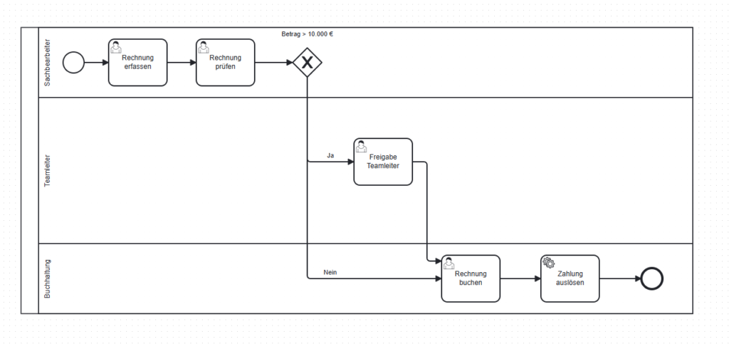 BPMN-basierte Ist-Analyse mit Volumina und Zeitaufwänden. Identifikation aller Aktivitäten, Rollen und Entscheidungslogiken - vollständig und lückenlos.